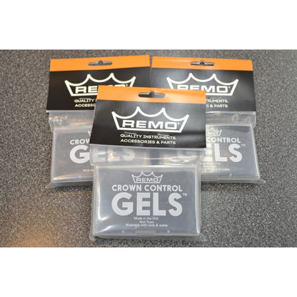 Remo's Crown Control Gels give you smart overtone control over your entire kit — drums, cymbals, auxiliary percussion, and more. The secret is a nontoxic formula that gently dampens unwanted ring and honk without killing the natural tone of your shells and heads. Slap one on a snare to create a more focused sound. Throw a set on your studio toms to shorten note length. You can even use Crown Control Gels on ride and hi-hat bells to reduce output and tame resonances. Best of all, Remo's self-adhering Crown Control Gels can be cut to size for lesser degrees of tone control and reactivated using simple soap and water. One set includes eight gels in a slim stick-bag-friendly hardshell case, so there's plenty to go around. Whether you're looking for that studio-ready dryness or just looking to shave some dBs off your cymbals and percussion, Remo Crown Control Gels deliver the goods.