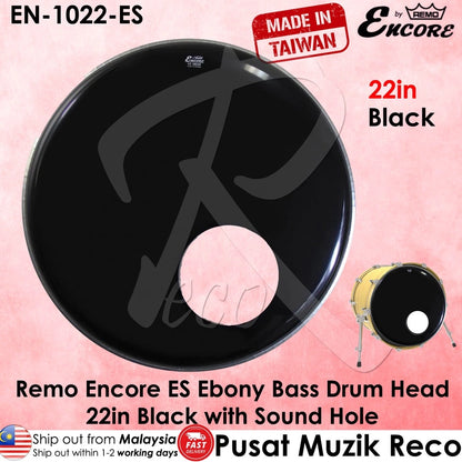 Remo EN-1022-ES Encore Bass Drum Head with Sound-Hole - 22", Ebony: