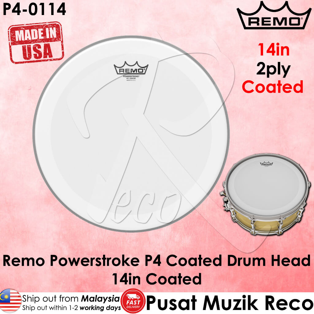 The Powerstroke® P4 Coated drumheads feature controlled sustain and focused low-end tones with increased durability. Snare and Tom drumheads are constructed with 2-plies of 7-mil Coated film with a 3-mil inlay ring, and Bass drumheads are constructed with a 7.5-mil inlay ring. Powerstroke® P4 Coated drumheads provide focused midrange tones making them the warmest-sounding of Remo's 2-ply drumheads with controlled sustain and attack.