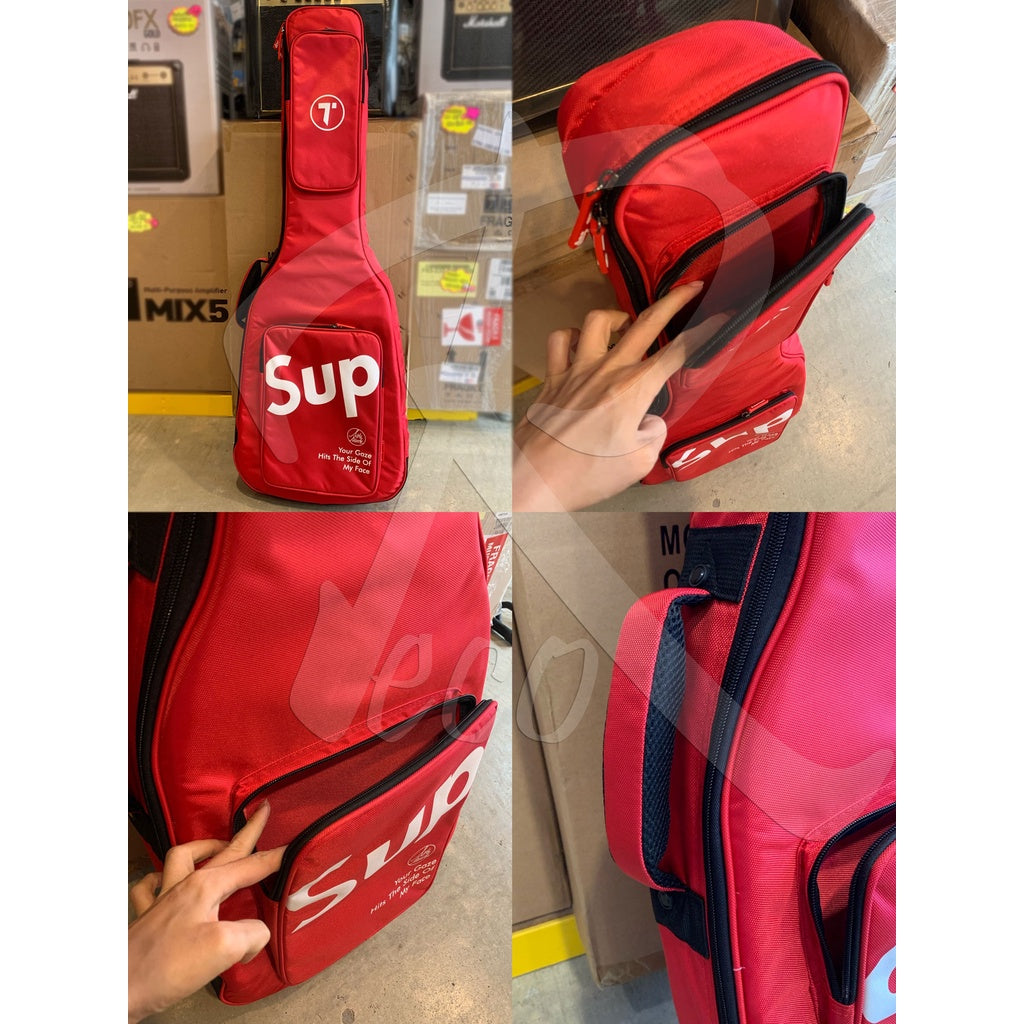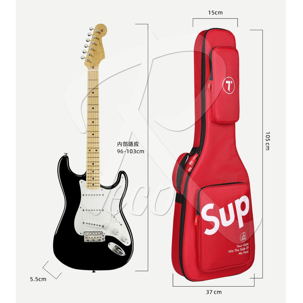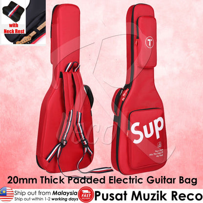 RM 20mm Thick Padded Electric Guitar Bag with Neck Rest Designer Series (Red/Black , Full Red)