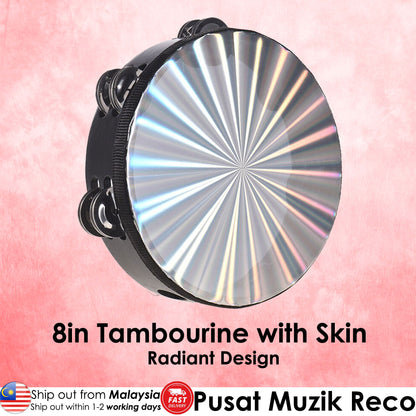 RM RT20/8 8 Inch Wooden Radiant Tambourine with Skin Double Row Jingles