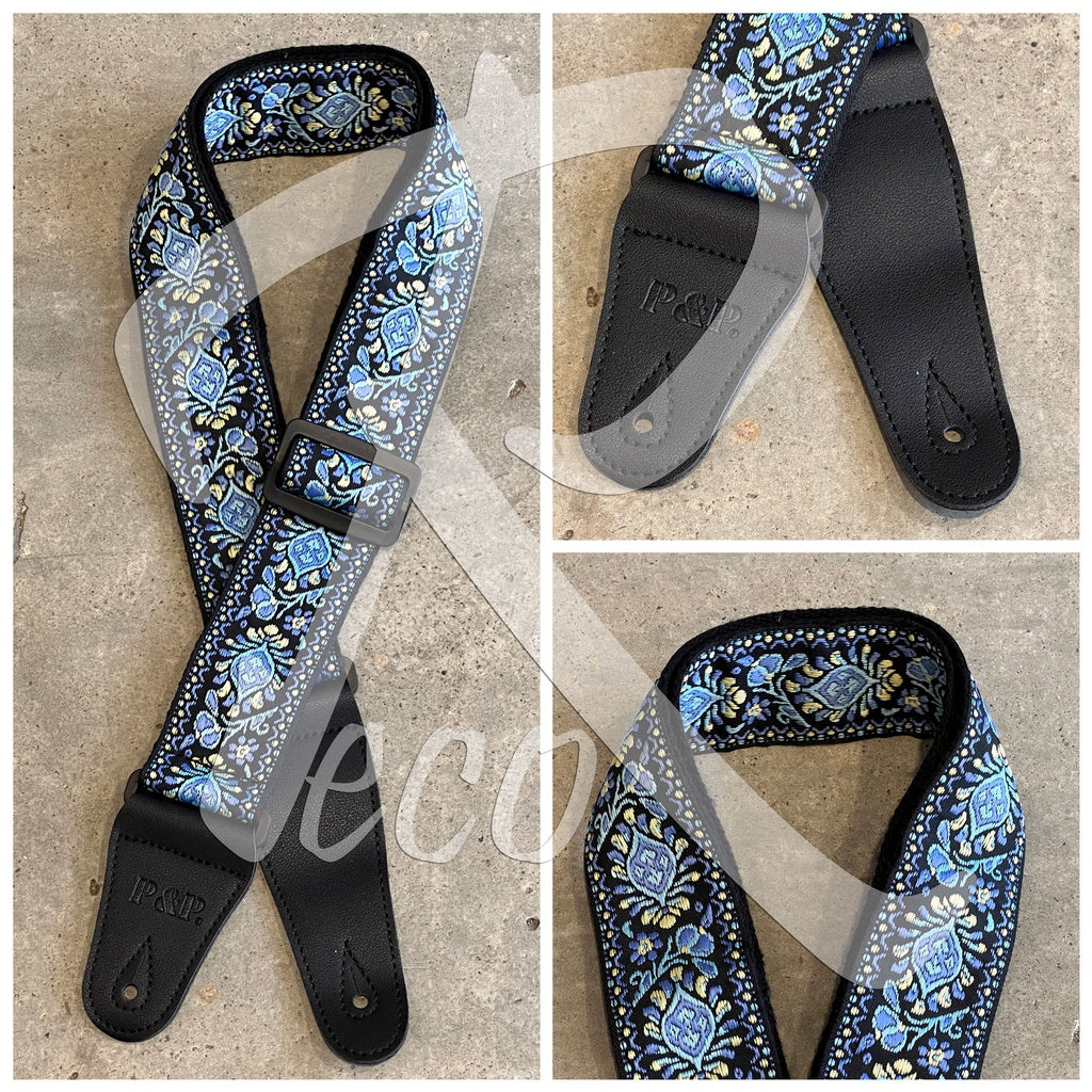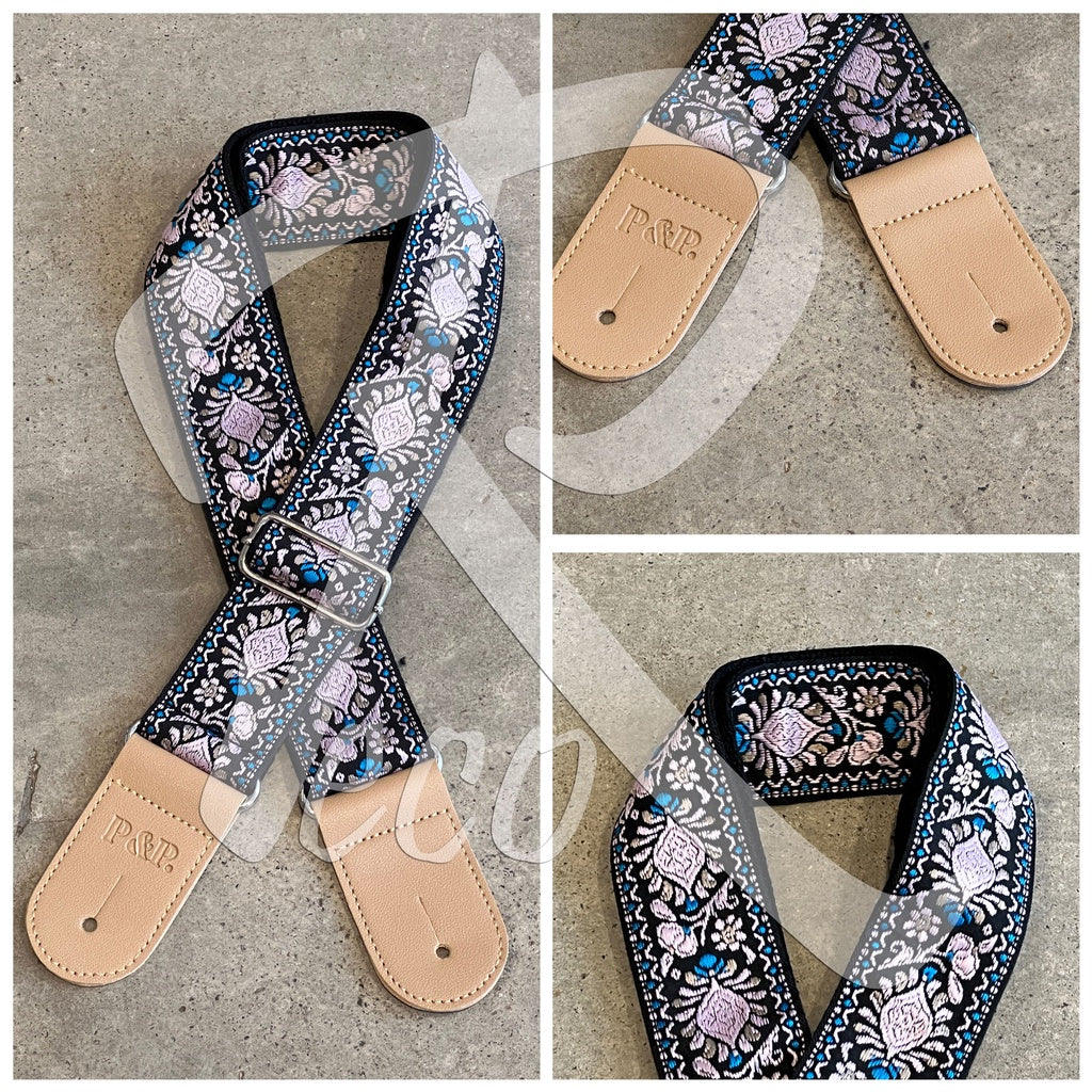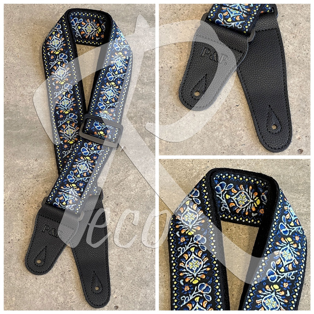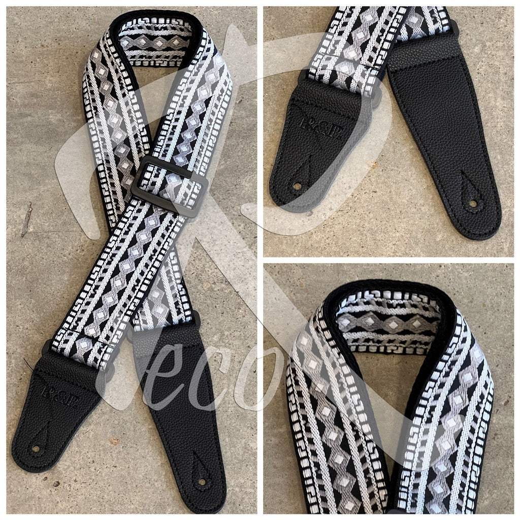 New Retro Design BRAIDED Cotton Acoustic Electric Guitar Strap This New Guitar strap by displays a beautiful pattern reminiscent of the retro of the Woodstock era, giving it that vintage hippie vibe!- Faux Leather ends.- Soft comfortable material - adjustable buckles-Adjustable length is approximately 82-137cm.