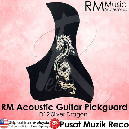 RM D12 Acoustic Guitar Pickguard with Silver Dragon Design and Easy Installation