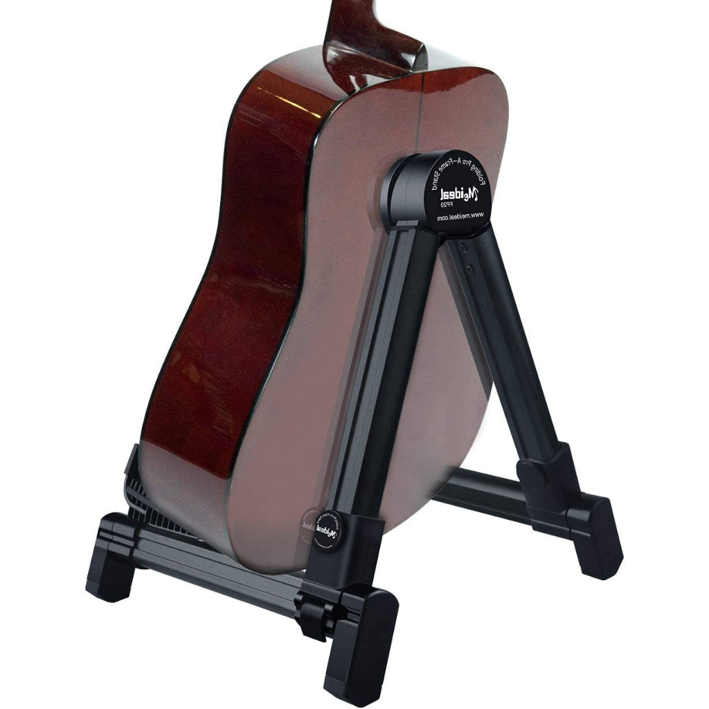 The A-frame design provides stability and support for the guitar, while the rubber padding on the arms and feet helps protect the instrument from scratches and damage. The stand is also adjustable to accommodate different guitar sizes and shapes.