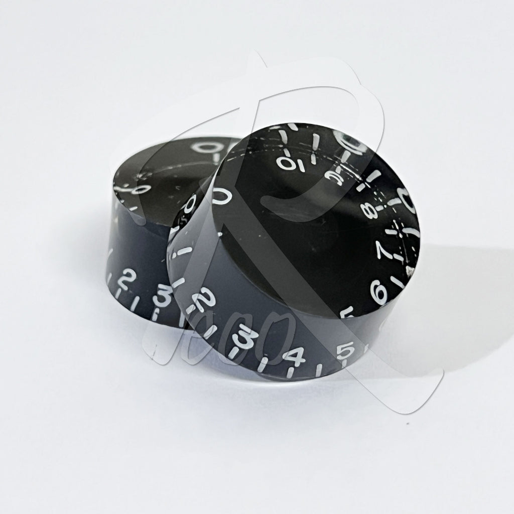 Top Hat Speed Control Knob fits for 1/4-inch split shaft pots. Fit for most guitars, like Les Paul, SG-style guitar. Arabic numerals scale range: 0 - 11 Material: Acrylic + Plastic.