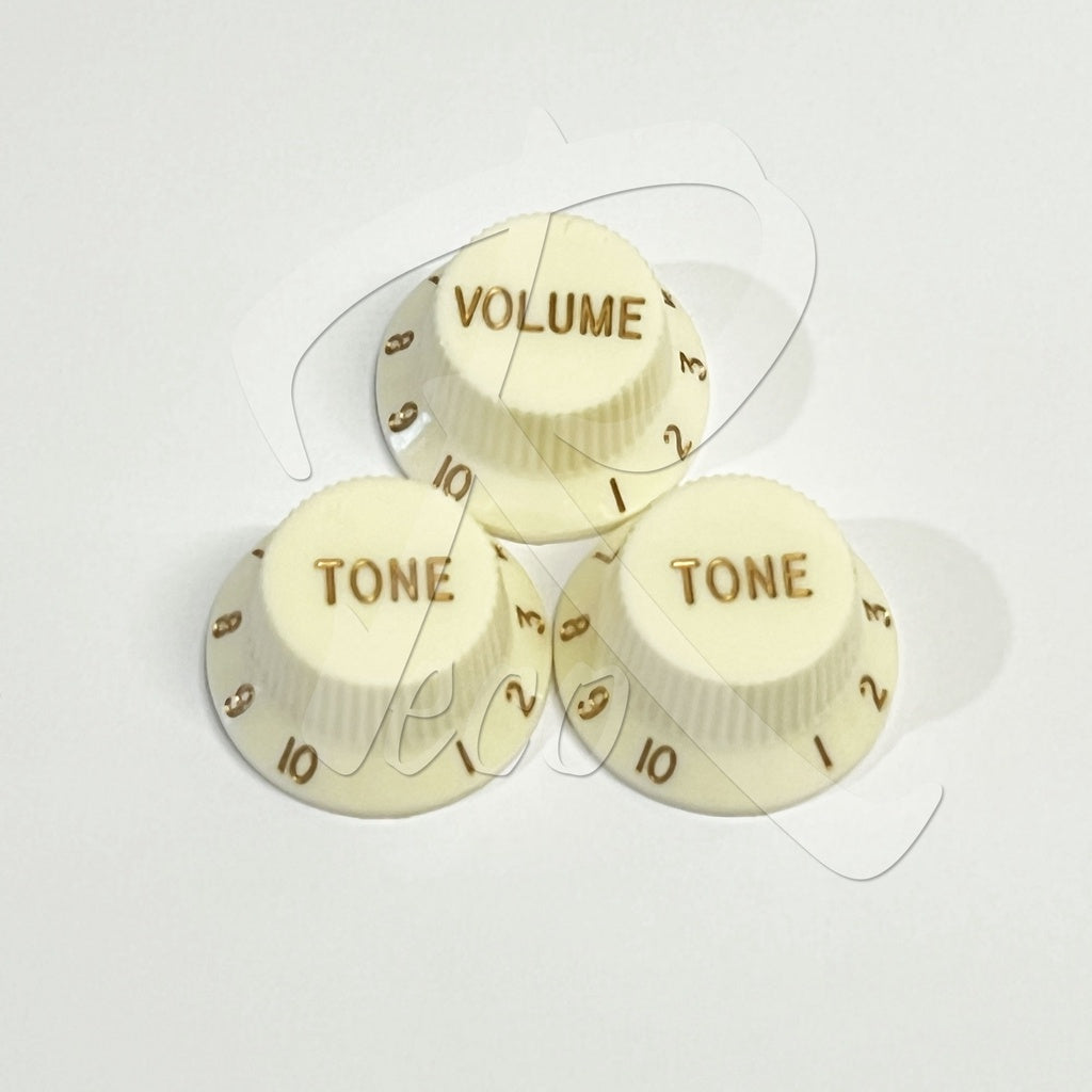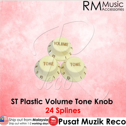 RM GF0558-24 AW-A 24 Spline CTS Knob Stratocaster Plastic Volume Tone Knob, Crème