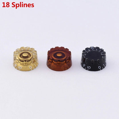 Fits most Asia-made guitar bass pots like Alpha pots after 2000's Epiphone Les Paul/SG/ES. 18 coarse splines, 6.0mm inner diameter, numbers 0-10
