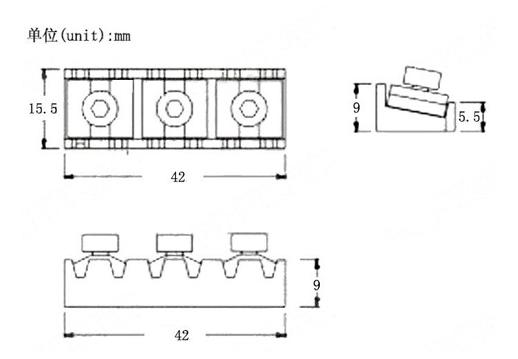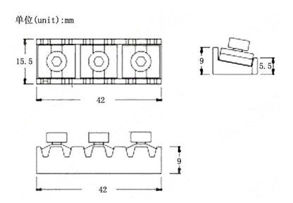 42MM is long and 15.5MM wide, this seems to be the standard size for electric guitar and can be used with your double lock system on a Floyd Rose.