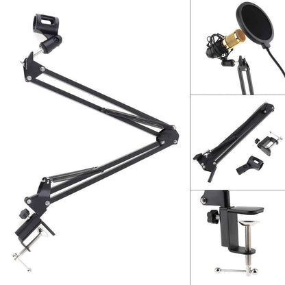 RM NB-35 Microphone Suspension Boom Scissor Arm Desktop Stand + Double Layer Pop Filter Wind Screen