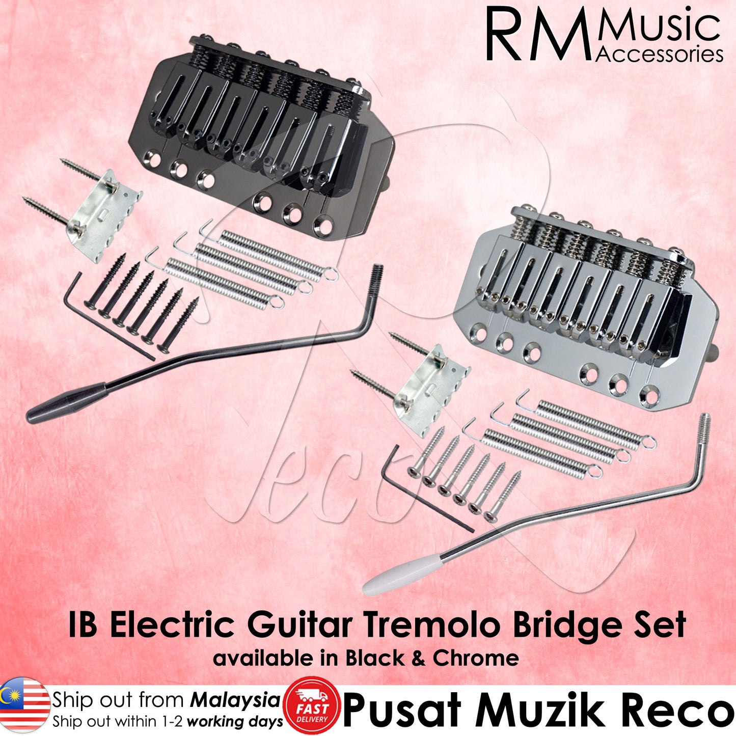 RM RT1499 IB Electric Guitar Tremolo Bridge System Set Chrome / Black
