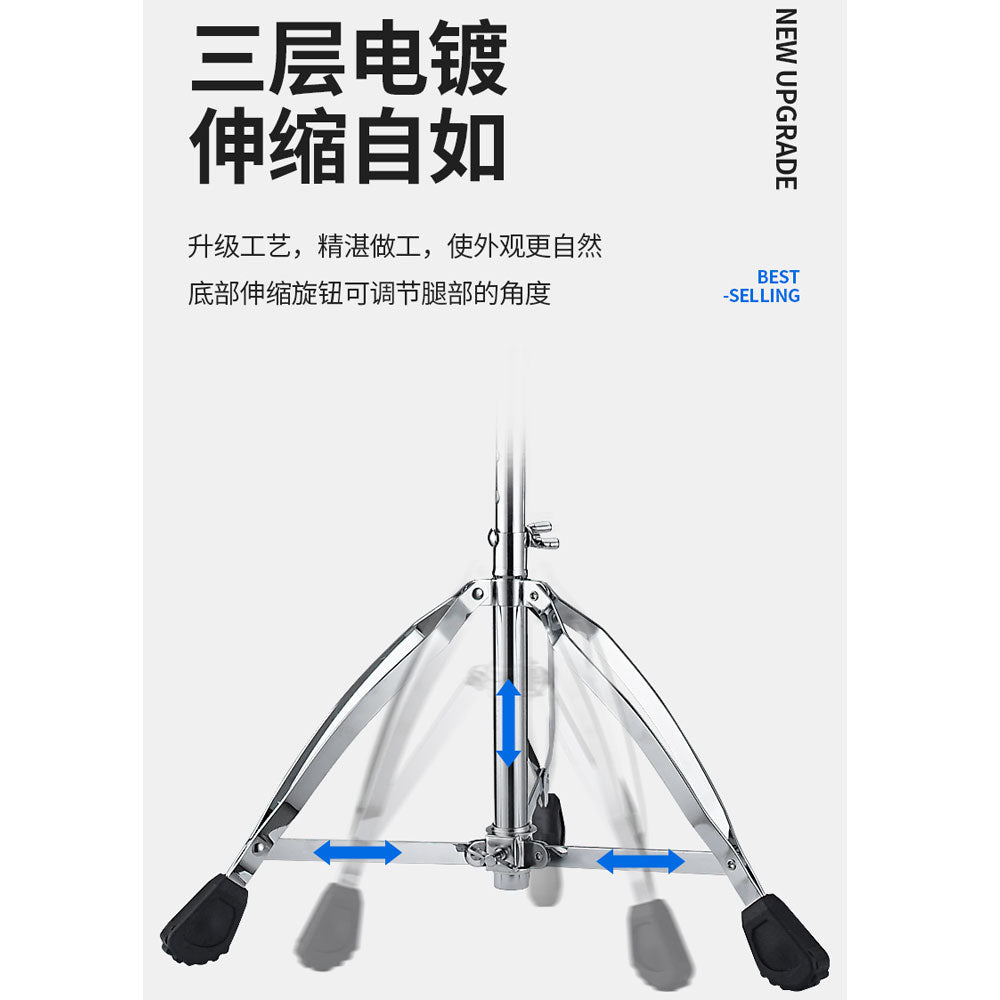 RM Double-Braced Drum Throne features a soft yet dense seat cushion that delivers long-lasting comfort and support, while its splayed, sturdy legs with nonslip rubber feet provide exceptional stability. The height-adjustable base enables ergonomic positioning for a variety of playing styles and folds flat for efficient storage and transportation.