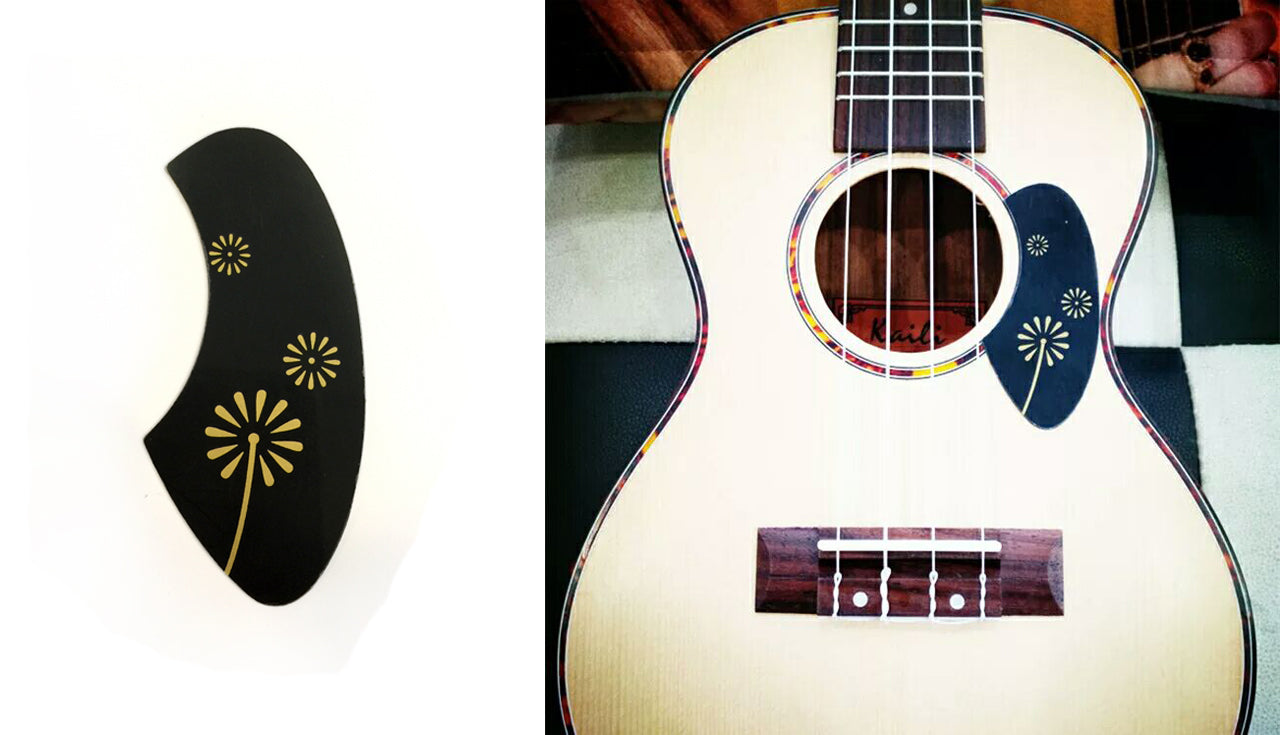 - With adhesive tape on the back and uncover it to stick on the guitar