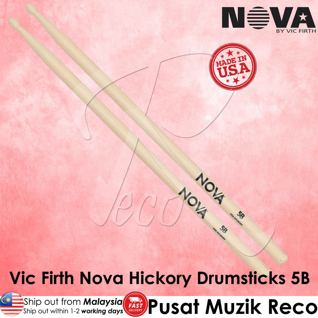 Vic Firth Nova Series N5B Hickory Wood Tip Drumsticks 5B (Made In USA)