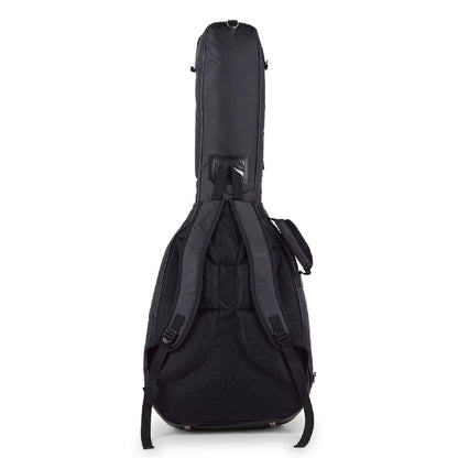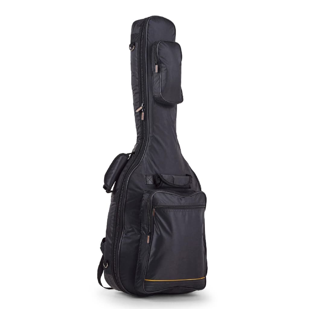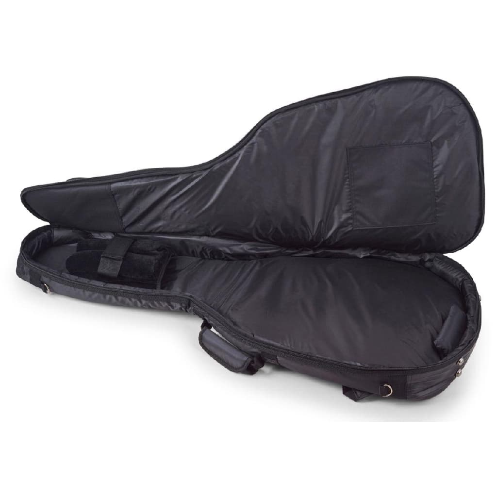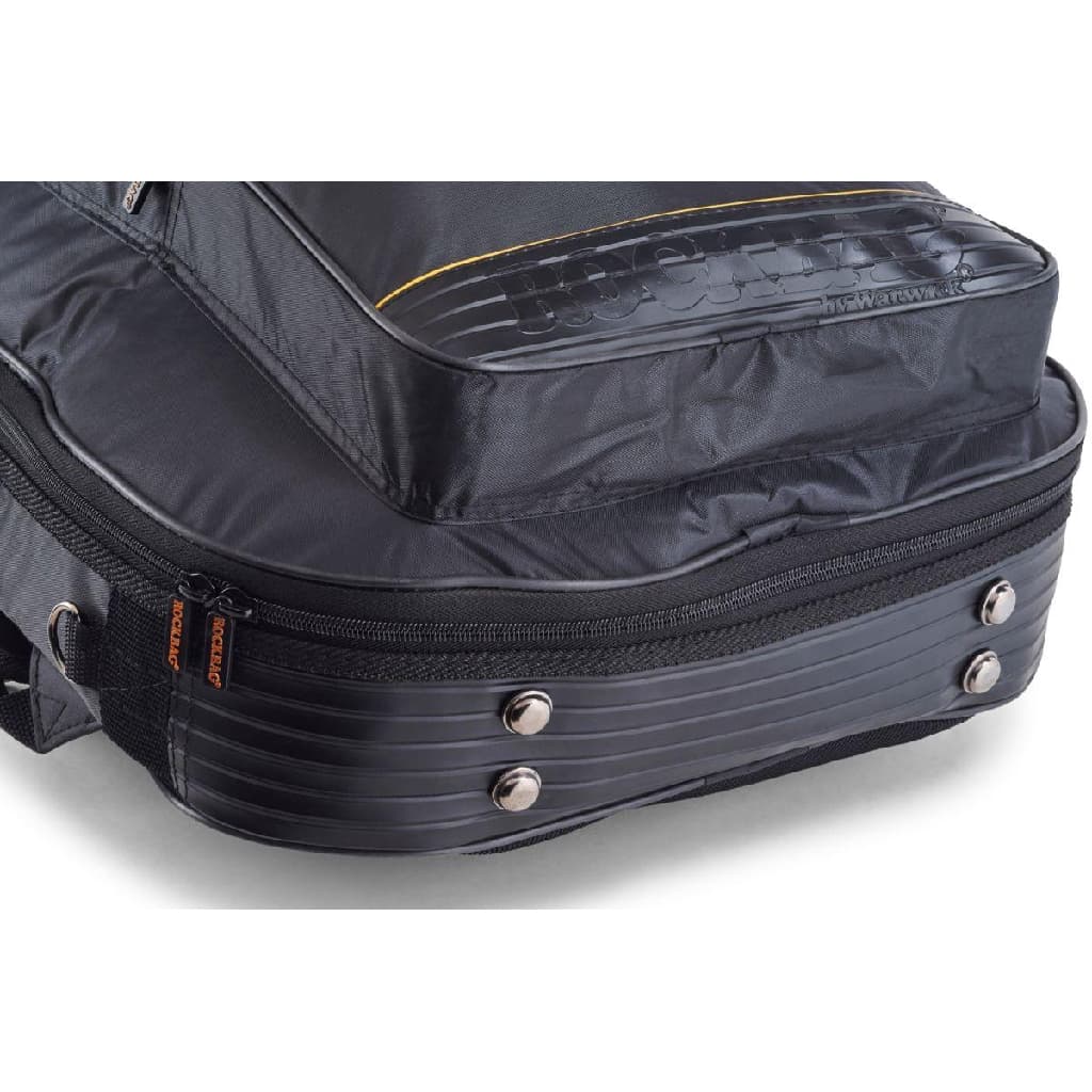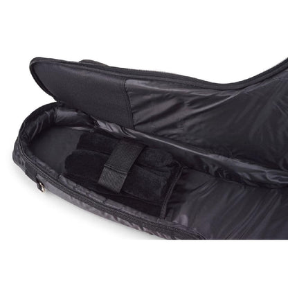 This Warwick RB20507B Rockbag guitar bag from Warwick is made from solid, water-resistant RokTex material with a rough surface and artificial leather applications and PVC piping. The inside lining is black nylon with 20 mm/0.79" cushioning. The bag is equipped with the Guitar-Saving-System with Neck-Saving-System for ultimate protection and has extra protective cushioning for the lower strap button. There is 1 removable shoulder strap and two 50 mm/1.97" wide backpack straps with padded shoulder protection, and a cushioned carrying handle at the front side. It also has 1 big outside pocket with a zipper, an extra pocket with zipping at the front side of the neck, and a window pocket for business cards.