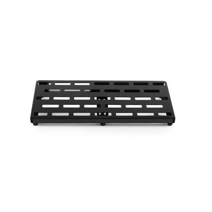 The new 2018 RockBoard® pedalboard series has been completely re-designed to create a pedalboard that is lightweight, rigid, and rugged, and allows for the use of a multitude of pedals as well as power supply mounting solutions. Its uniquely ingenious construction is based on only one folded, cold-rolled aluminum sheet for the board frame and has not a single welded seam. This makes the board surface completely plain and gives you more pedalboard space for your money. U-shaped vertical support braces offer additional stability without adding too much weight. The new RockBoard® pedalboards will neither bend nor wiggle. The innovative slot-based design works equally well with the new RockBoard® Quick Mount pedal mounting plates (sold separately) as well as with standard mounting solutions (e.g. hook and loop tape, cable ties). The slots also let you easily hide cables underneath the surface for a neat and tidy setup. Additionally, any power supply can either be mounted underneath the board surface or using the optional RockBoard® The Tray universal power supply mounting solution. All RockBoard® 2018 Series models (except Duo 2.1) are compatible with the RockBoard® MOD patch bays. With seven sizes ranging from 47 cm (18 1/2") to 100 cm (39 3/8") in width, we are sure you will find the perfect board for your needs. All sizes are available with either gig bag or flight case.