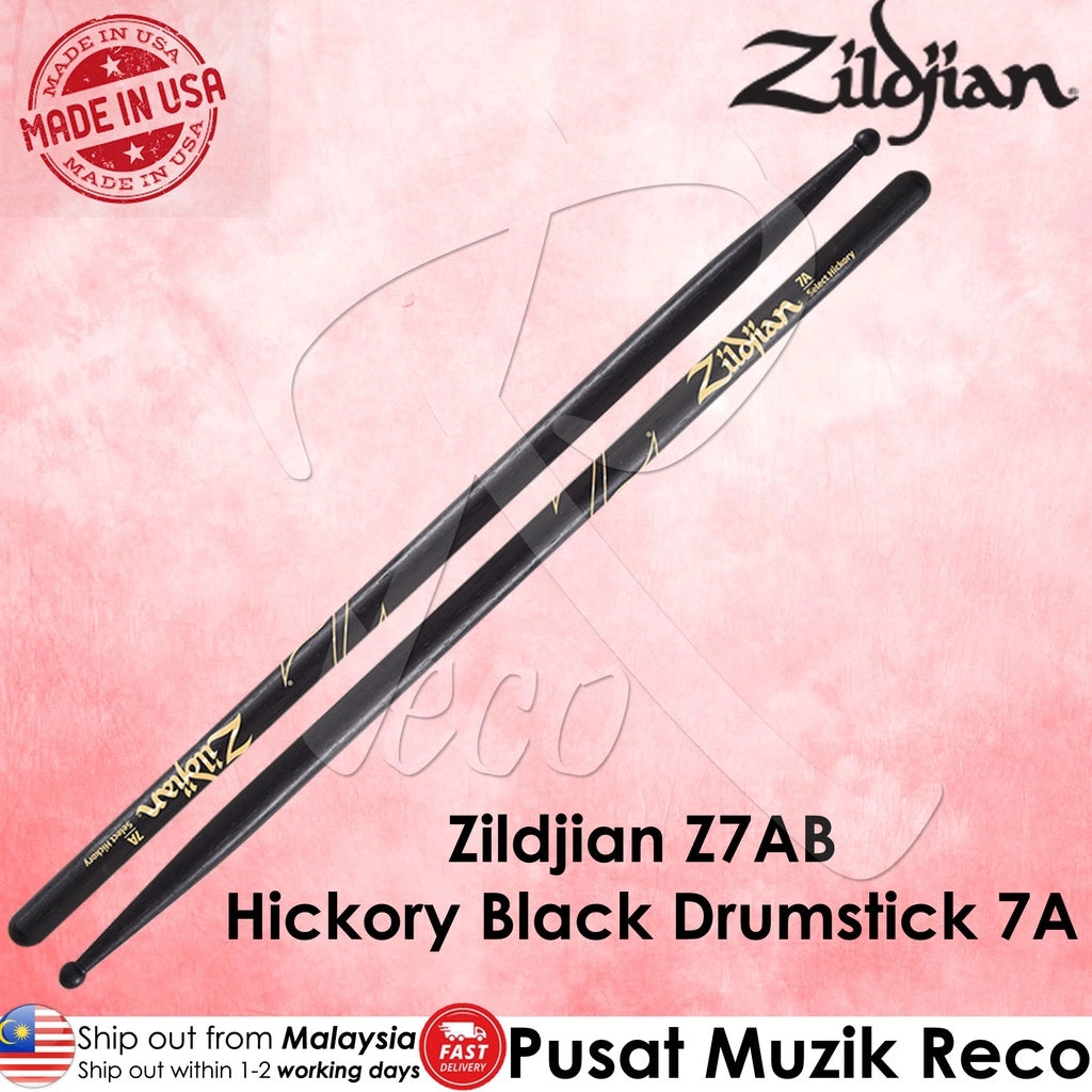 Zildjian Z7AB Hickory Series Wood Tip BLACK 7A Drumstick (USA Made)