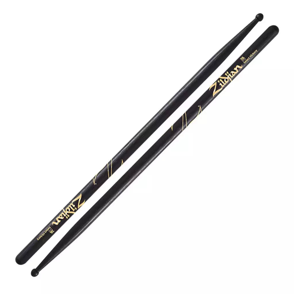 The Zildjian Hickory Series - 7A Wood Tip Black Drumsticks have a full-sized oval tip that produces a full tone. Black / Hickory / Wood Tip